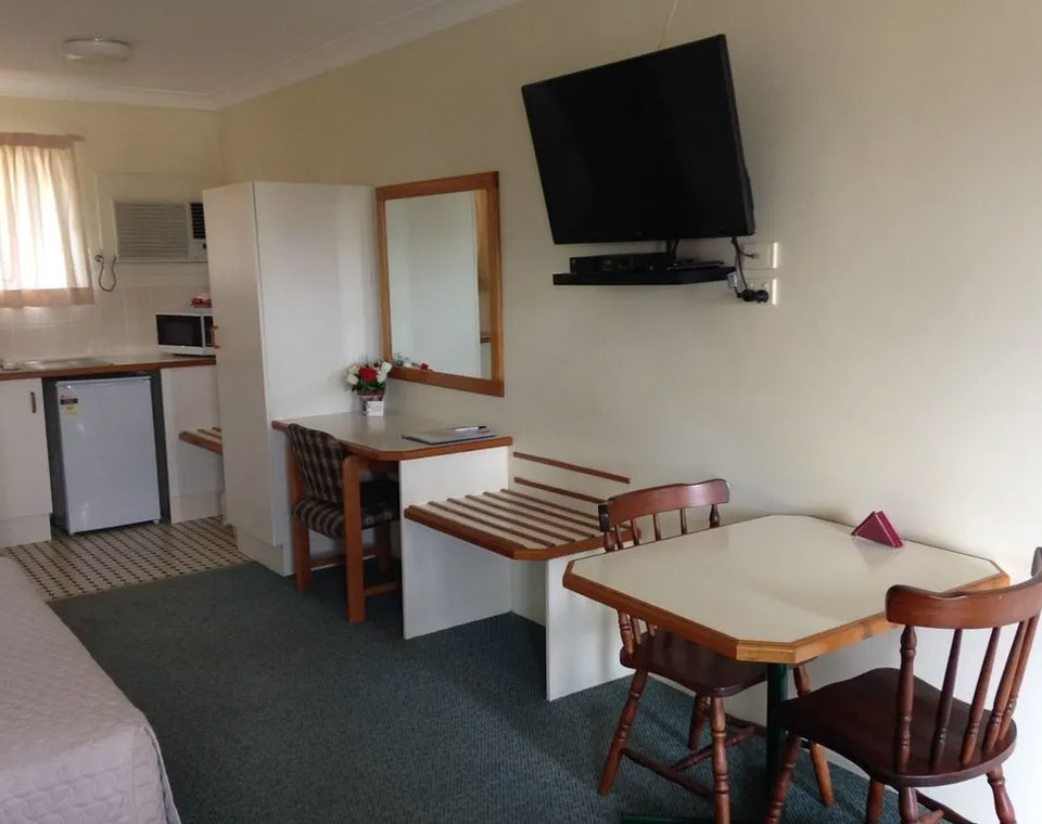 All rooms have kitchenettes, spacious bathrooms, Tea and Coffee making facilities, toaster, iron and ironing board, hairdryer, Queen beds, direct-dial phones, data ports, and in-house movies.